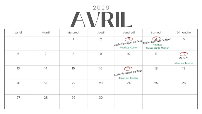 Planning des événements AVRIL 2026